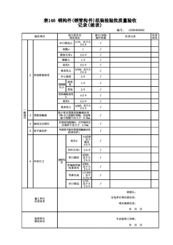 表格名称:110304030403 钢构件(钢管构件)组装检验批质量验收记录