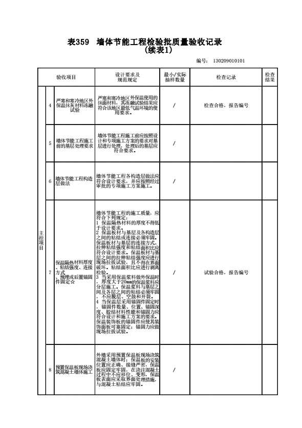 表格名称:130209010101 墙体节能工程检验批质量验收记录