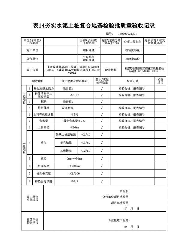 表格名称:130301031301 夯实水泥土桩复合地基检验批质量验收记录