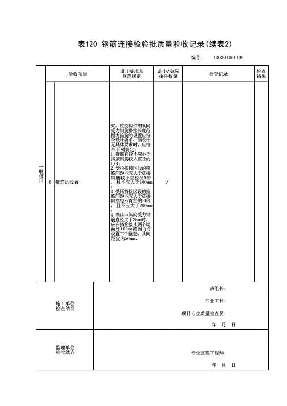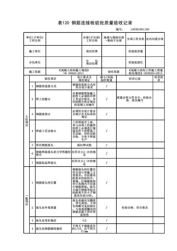 表格名称:130301061109 钢筋连接检验批质量验收记录