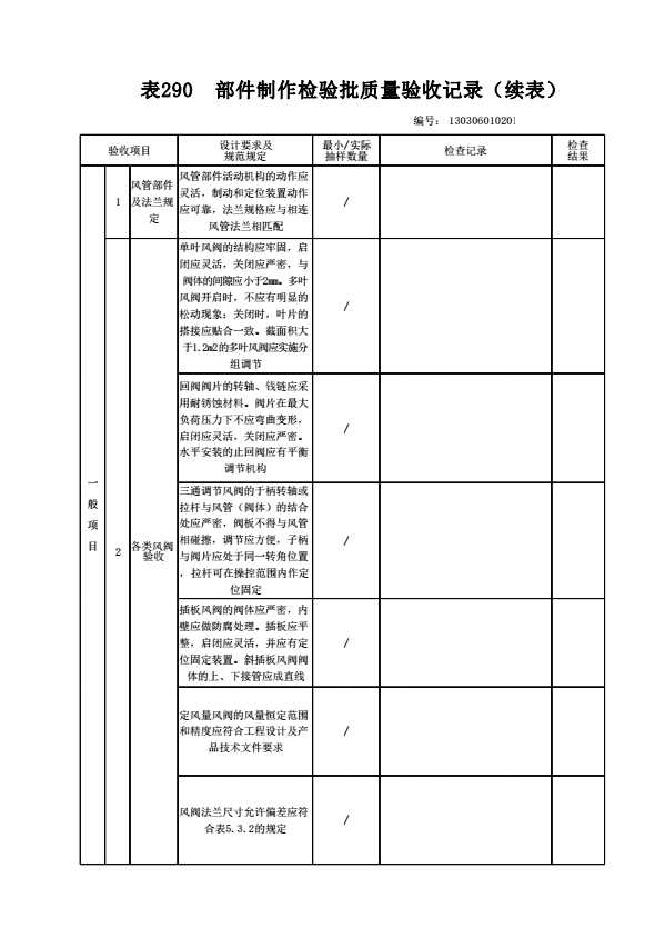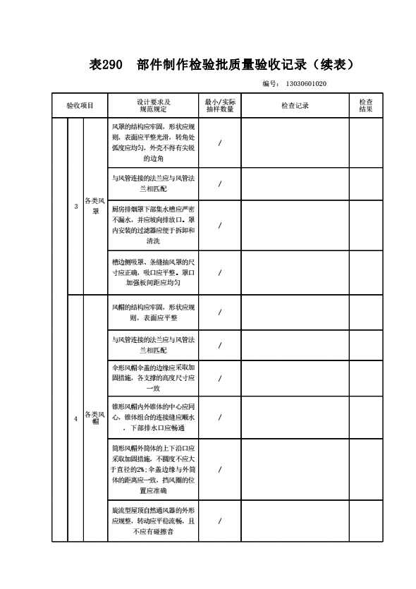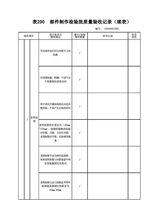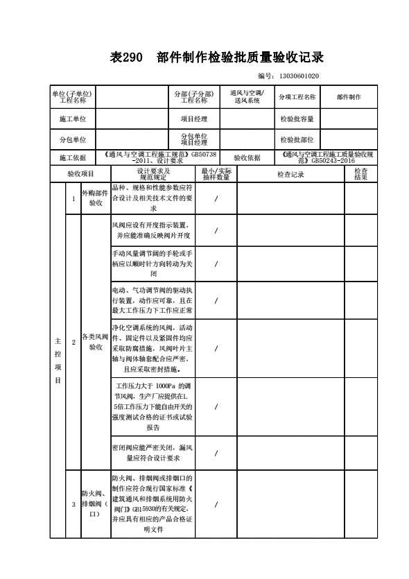 130306010201 部件制作检验批质量验收记录