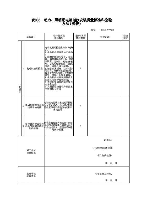 表格名称:130307010201 电动机、电加热器及电动执行机构检查接线检验批质量验收记录