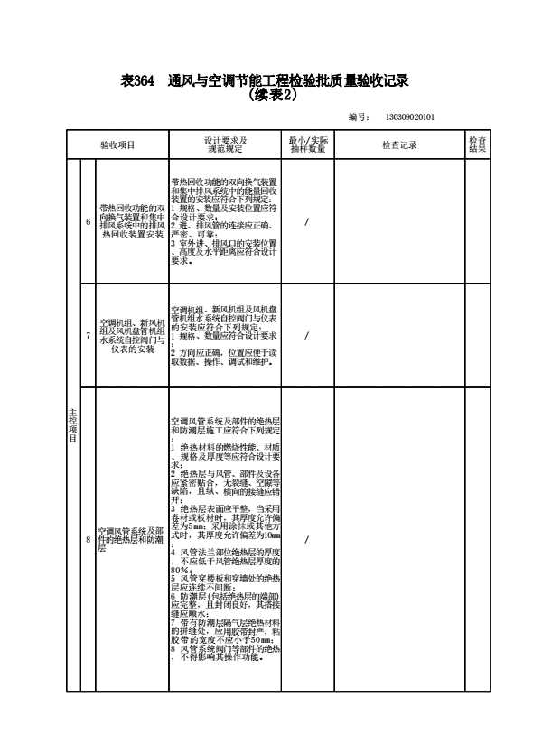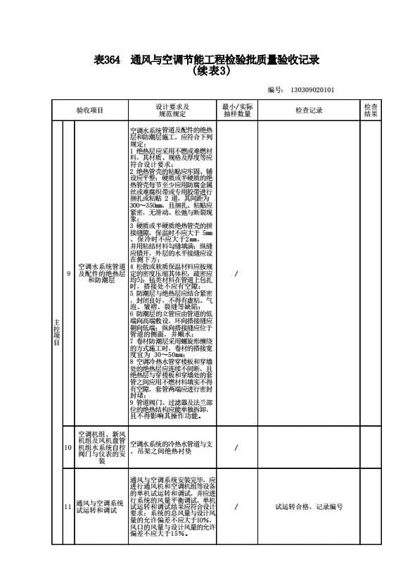130309020101 通风与空调节能工程检验批质量验收记录