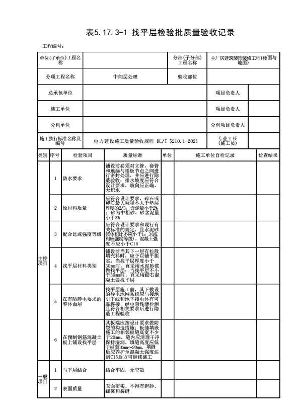 表格名称:表5.17.3-1 找平层检验批质量验收记录