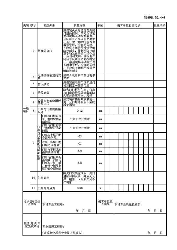 表格名称:表5.20.4-3 防火门安装工程检验批质量验收记录