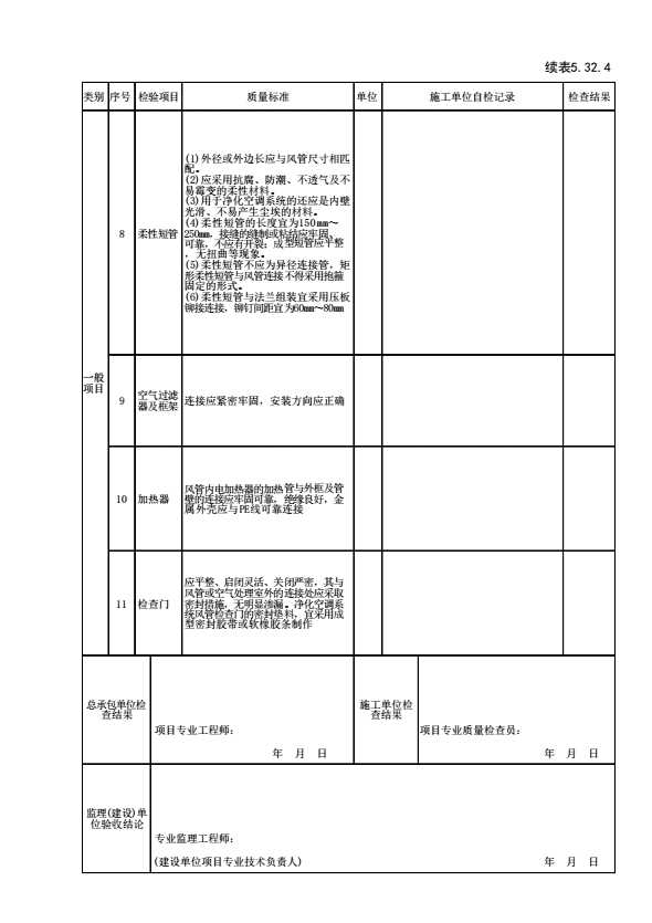 表格名称:表5.32.4 风管部件与消声器产成品检验批质量验收记录