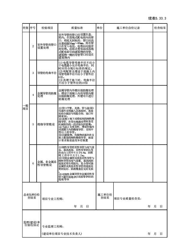 表格名称:表5.33.3 电线导管、电缆导管和线槽敷设安装(Ⅱ)室外捡验批质量验收记录