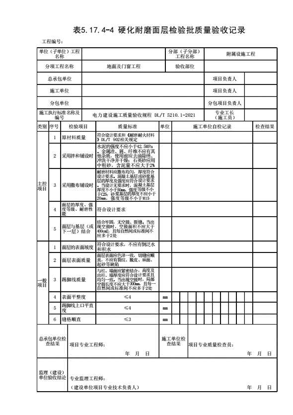 表格名称:表5.17.4-4 硬化耐磨面层检验批质量验收记录