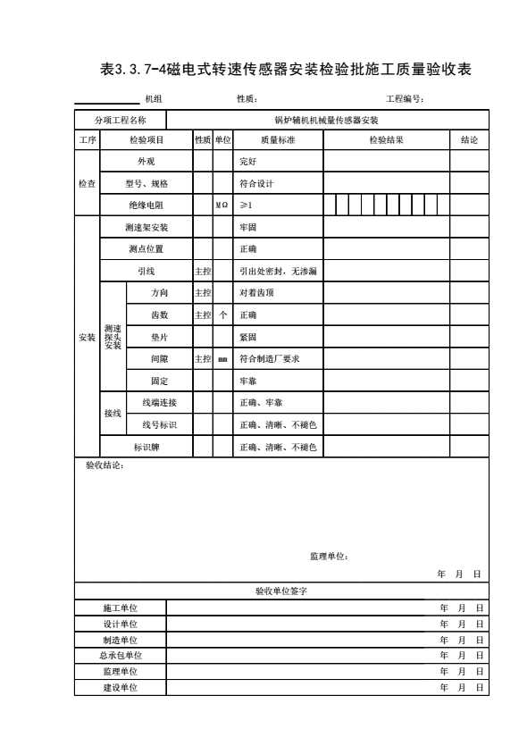 表格名称:表3.3.7-4 磁电式转速传感器安装检验批施工质量验收表