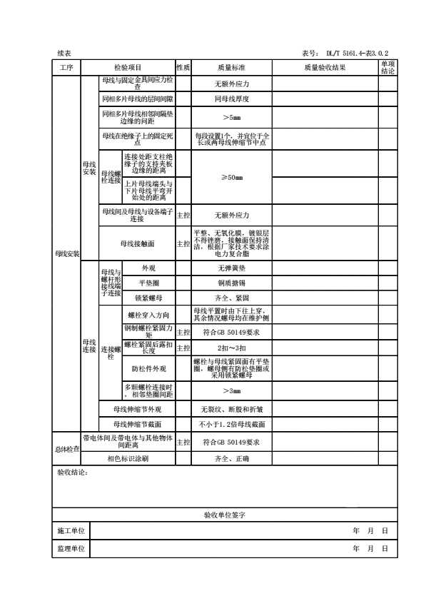 表格名称:表3.0.2 矩形母线的安装分项工程质量验收表
