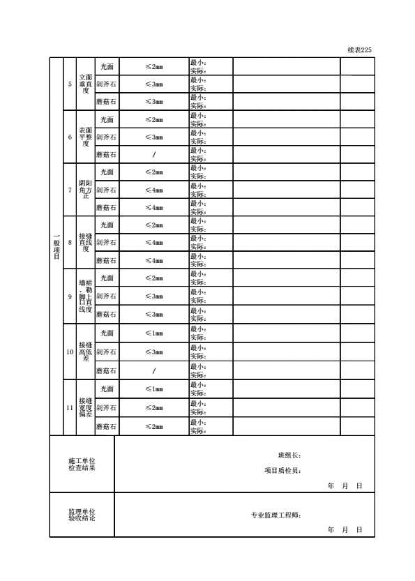 表格名称:030103150201 石板安装工程检验批质量验收记录