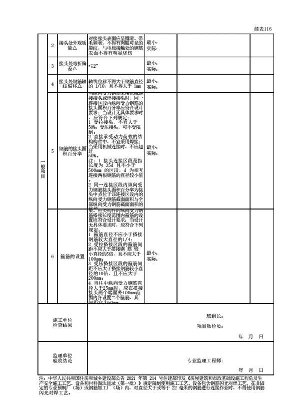 表格名称:100201060308 钢筋闪光对焊检验批质量验收记录