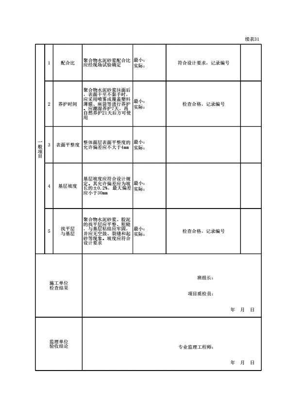 表格名称:100201061304 聚合物水泥砂浆找平层检验批质量验收记录
