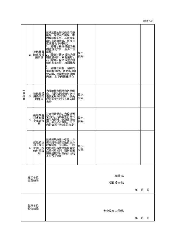 表格名称:150307030401 接地装置安装检验批质量验收记录