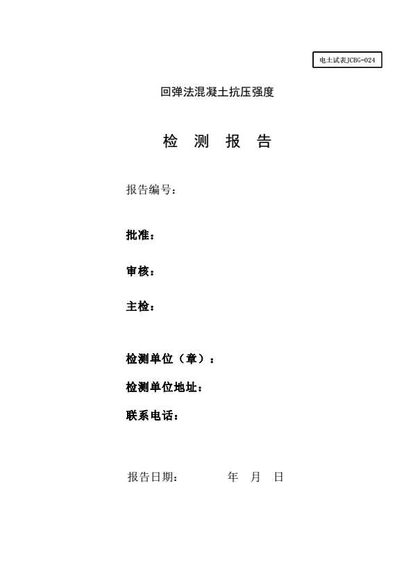 表格名称:电土试表JCBG-024 回弹法混凝土抗压强度检测报告
