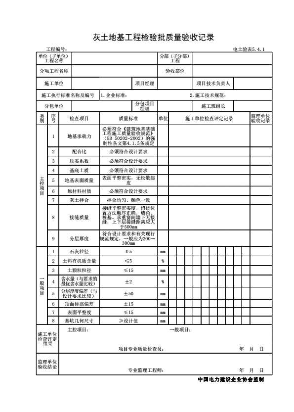 表格名称:电土验表5.4.1 灰土地基工程检验批质量验收记录