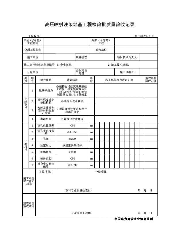 表格名称:电土验表5.4.9 高压喷射注浆地基工程检验批质量验收记录