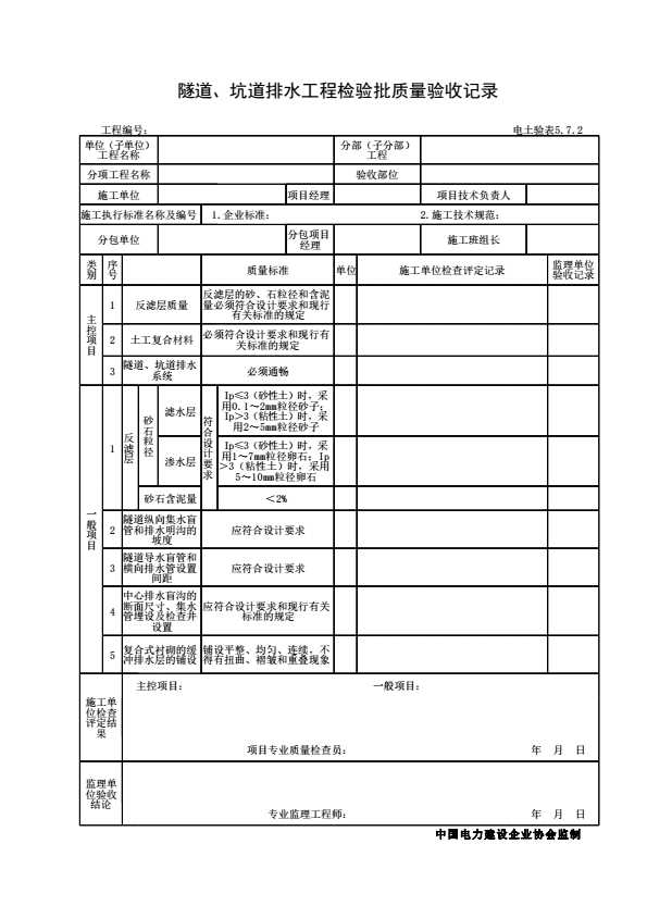 表格名称:电土验表5.7.2 隧道、坑道排水工程检验批质量验收记录