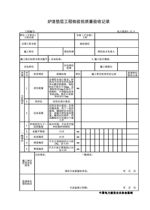 表格名称:电土验表5.12.6 炉渣垫层工程检验批质量验收记录