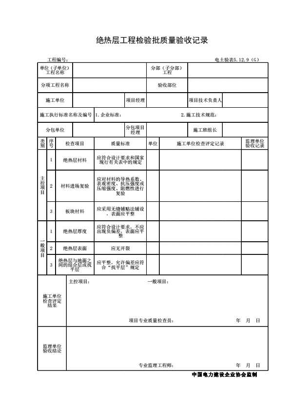 表格名称:电土验表5.12.9(G)绝热层工程检验批质量验收记录