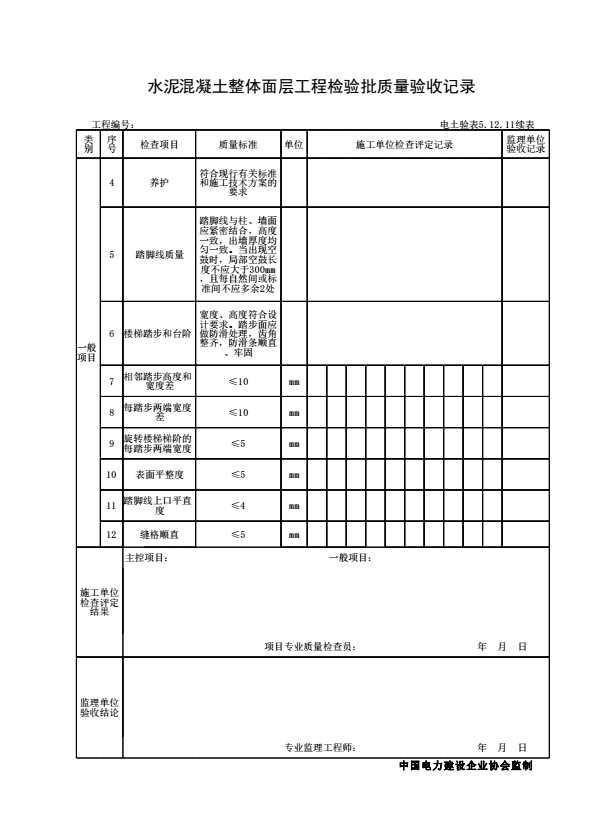 表格名称:电土验表5.12.11 水泥混凝土整体面层工程检验批质量验收记录