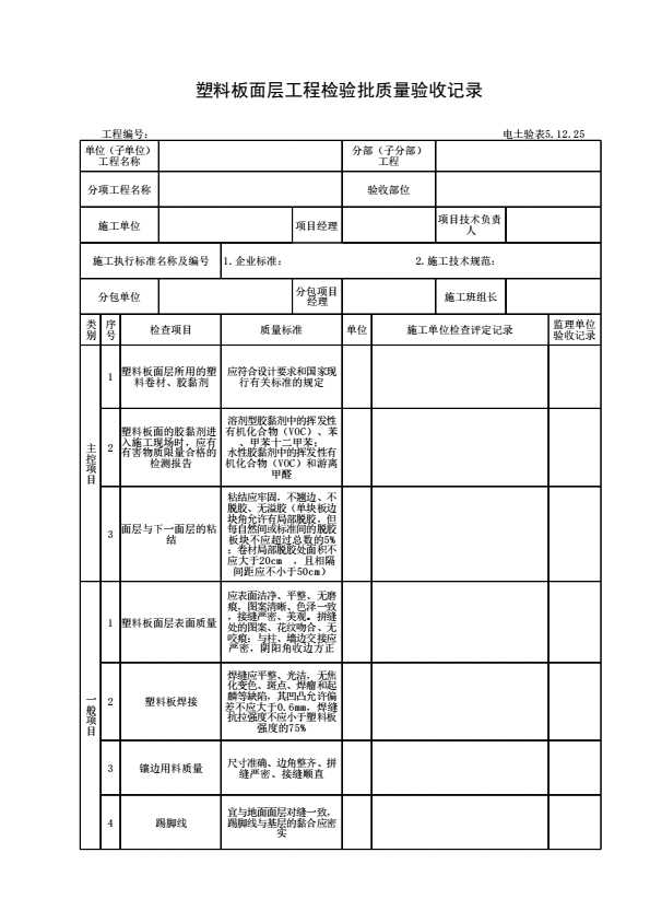 表格名称:电土验表5.12.25 塑料板面层工程检验批质量验收记录
