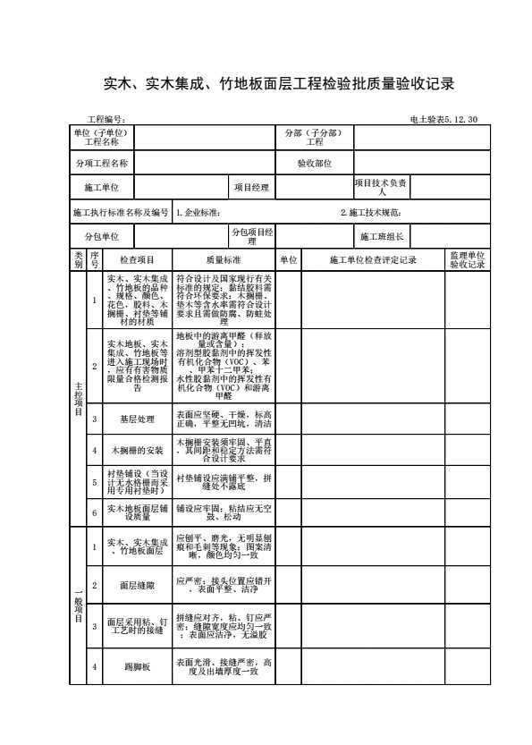 表格名称:电土验表5.12.30 实木、实木集成、竹地板面层工程检验批质量验收记录