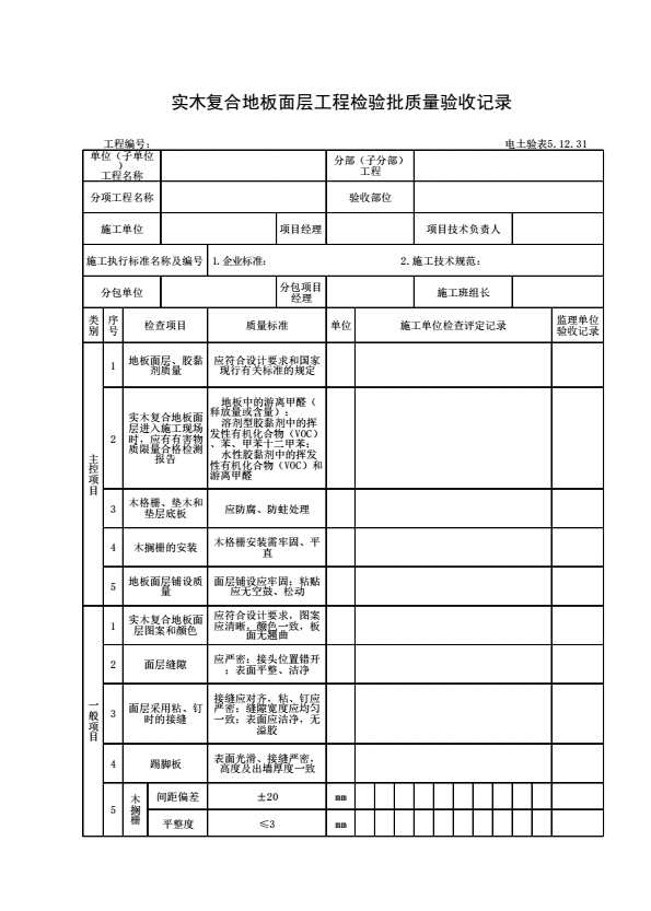 表格名称:电土验表5.12.31 实木复合地板面层工程检验批质量验收记录