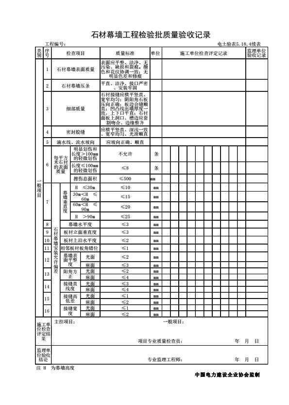 表格名称:电土验表5.18.4 石材幕墙工程检验批质量验收记录