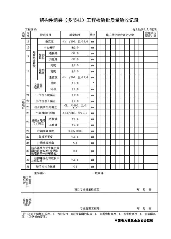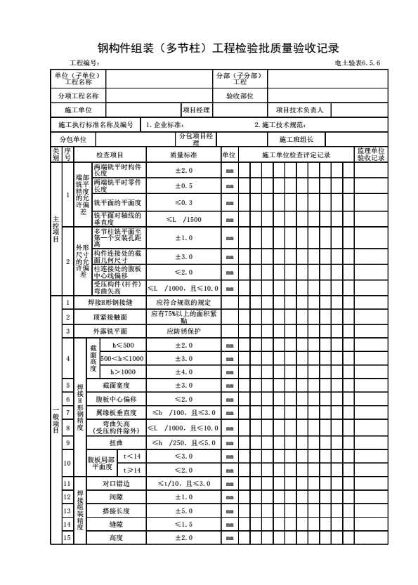 表格名称:电土验表6.5.6 钢构件组装(多节柱)工程检验批质量验收记录