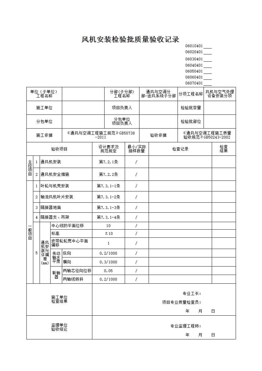 本表适用于工作压力不大于5KPa的风机设备安装质量的检验与验收。