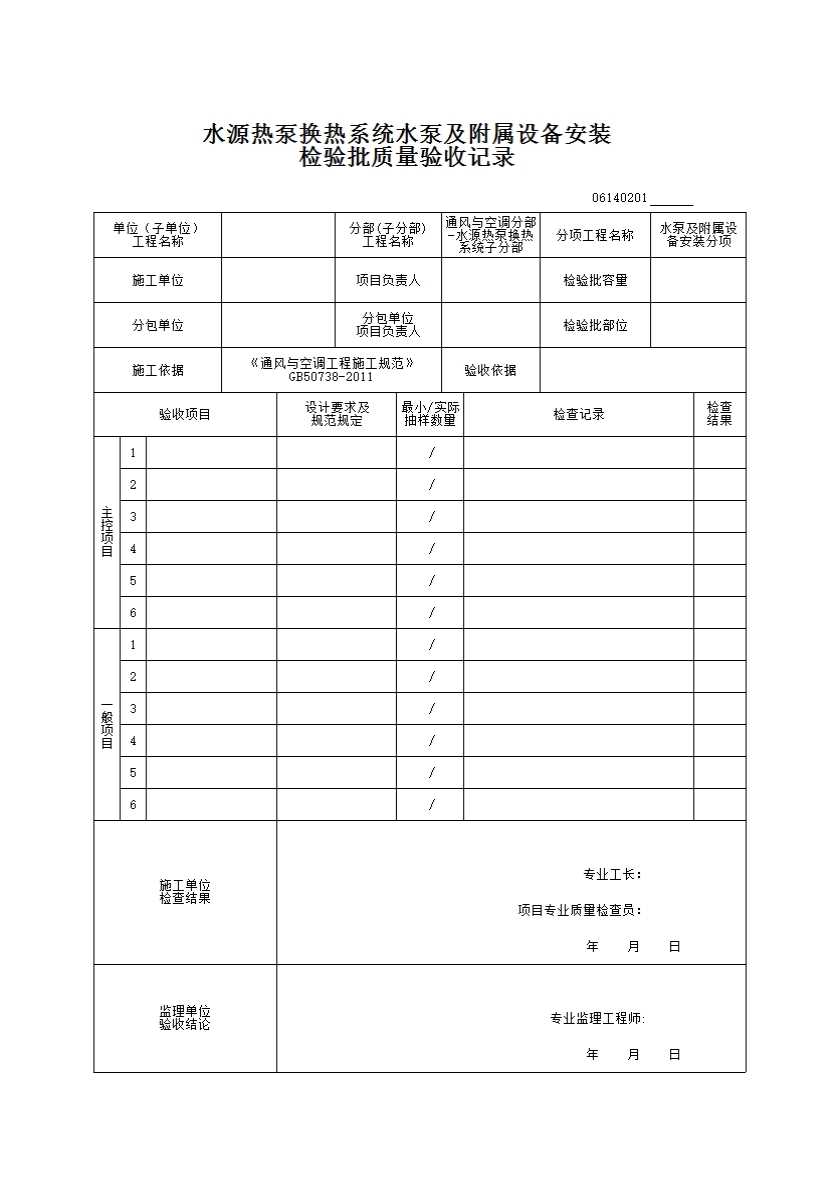 表格名称:06140201_水源热泵换热系统水泵及附属设备安装检验批质量验收记录