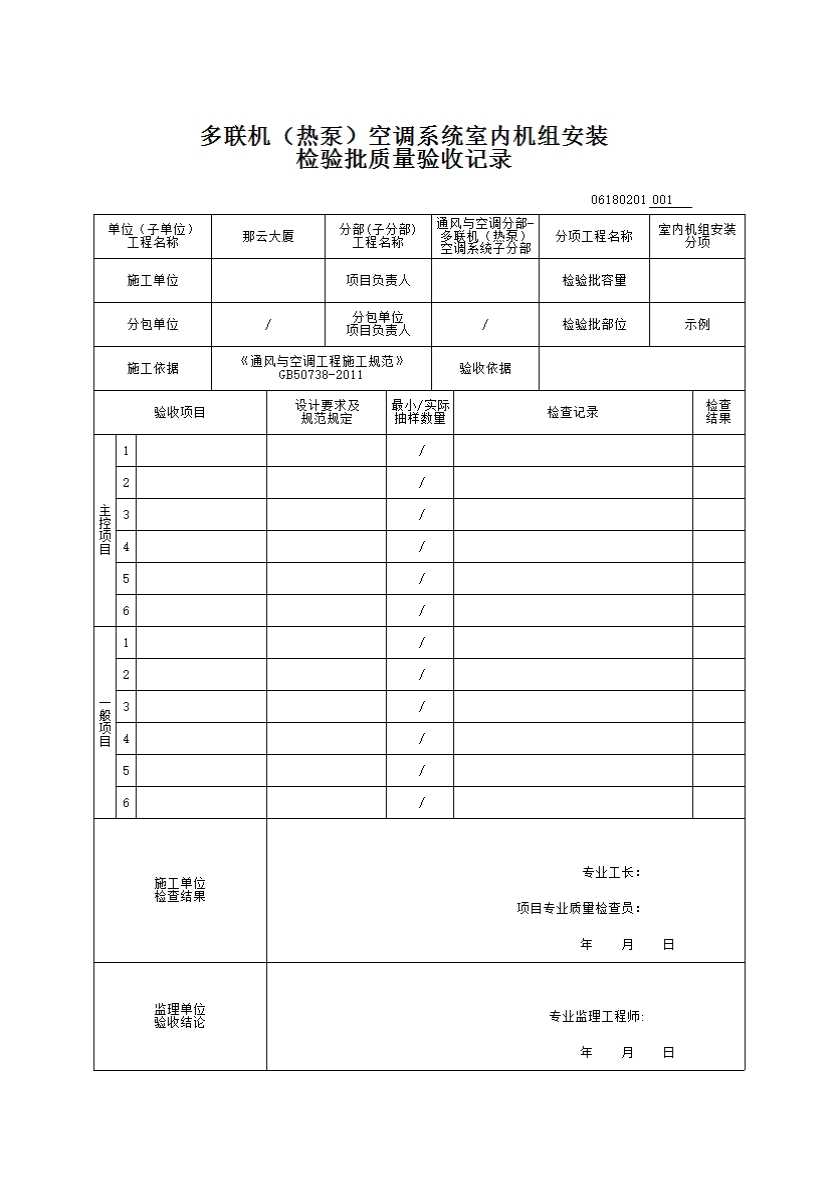 表格名称:06180201_多联机(热泵)空调系统室内机组安装检验批质量验收记录