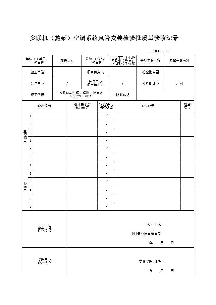 表格名称:06180401_多联机(热泵)空调系统风管安装检验批质量验收记录