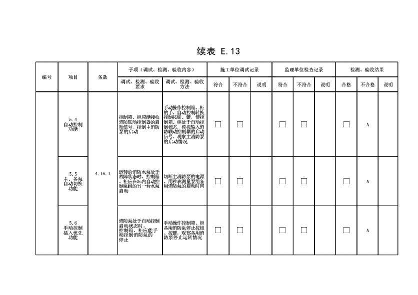 表格名称:表E.13 自动喷水灭火系统调试、检测、验收记录(续表4)