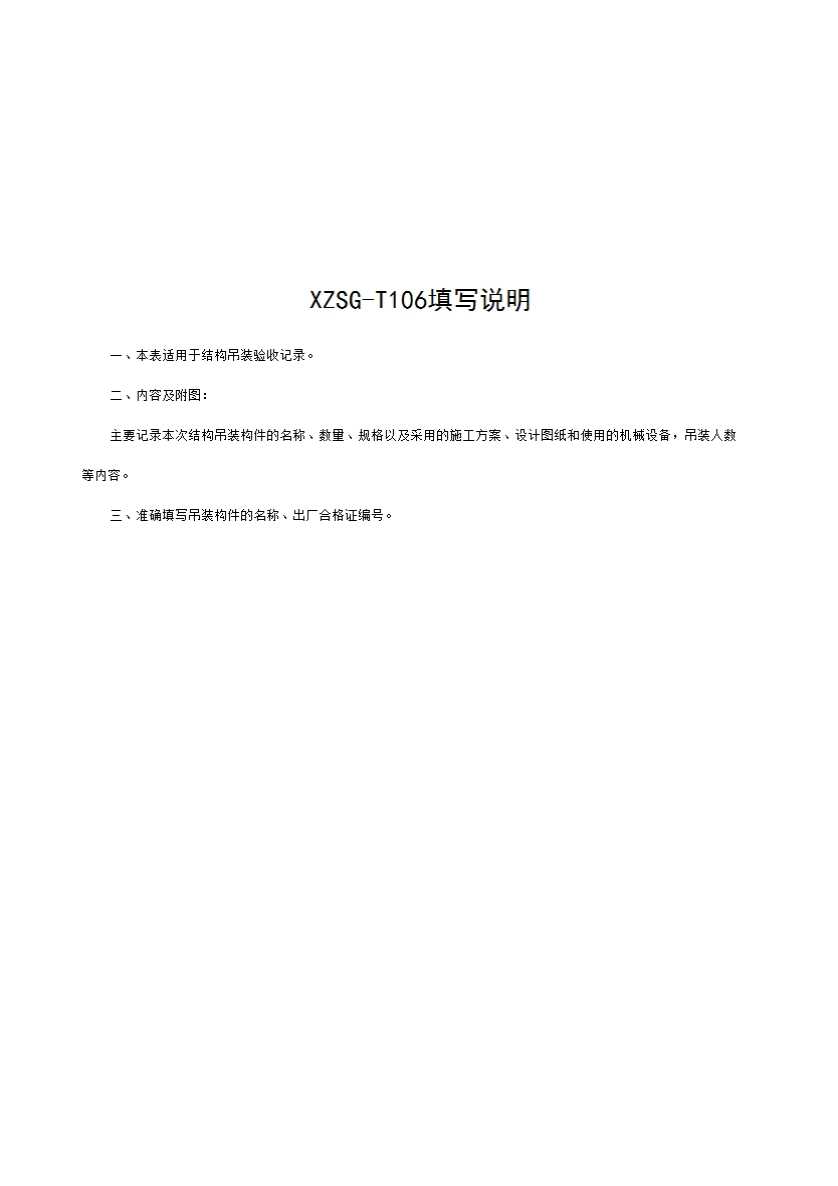 主要记录本次结构吊装构件的名称、数量、规格以及采用的施工方案、设计图纸和使用的机械设备,吊装人数等内容。