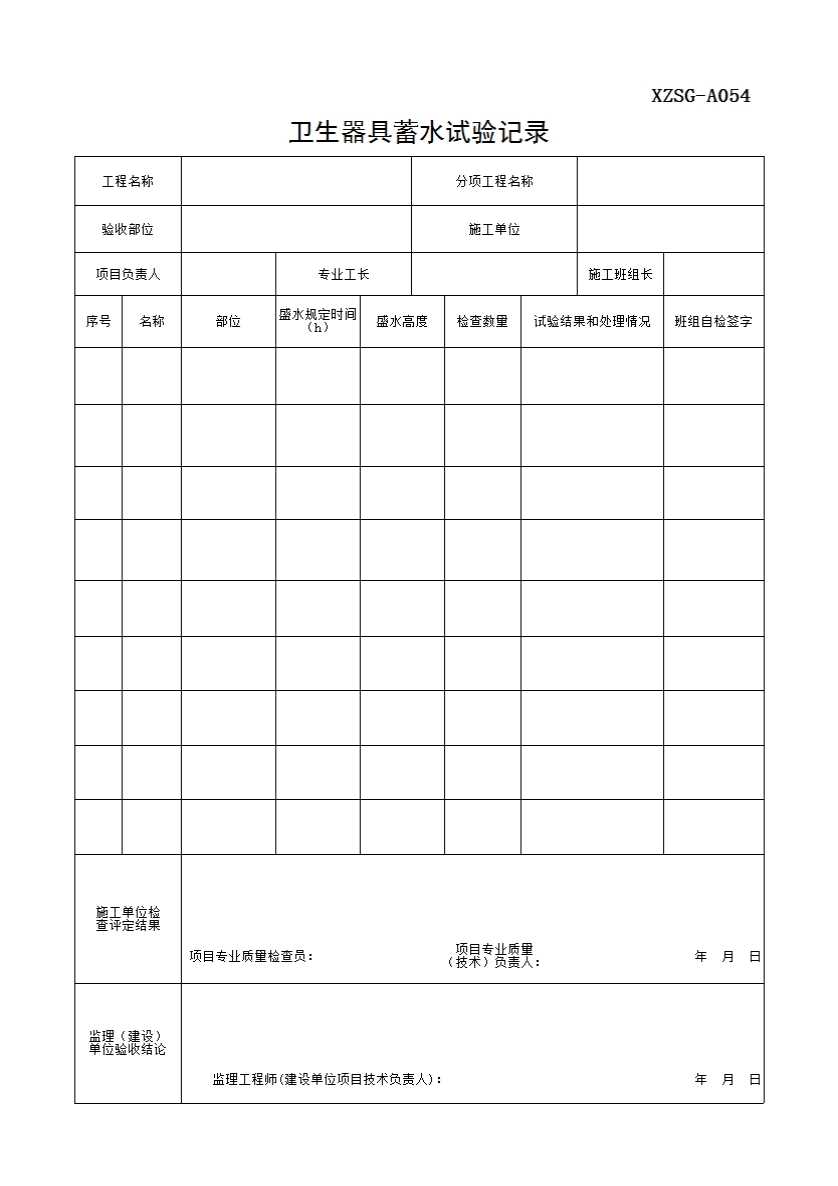 5、安装后的卫生器具应按规定进行器具蓄水试验,在试验中出现渗漏现象及如果处理的情况均应如实填写。