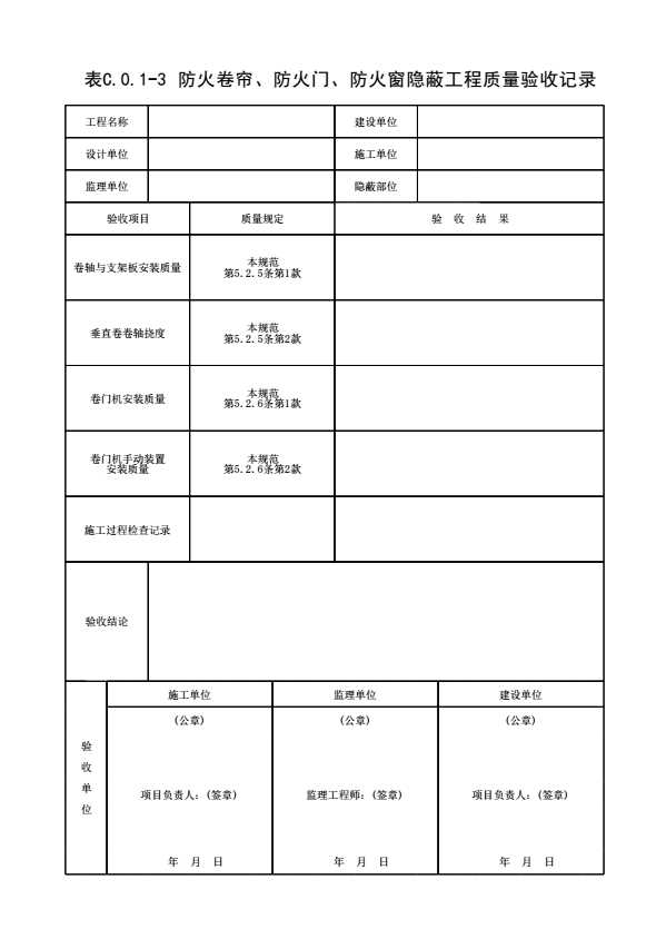 表格名称:表C.0.1-3 防火卷帘、防火门、防火窗隐蔽工程质量验收记录