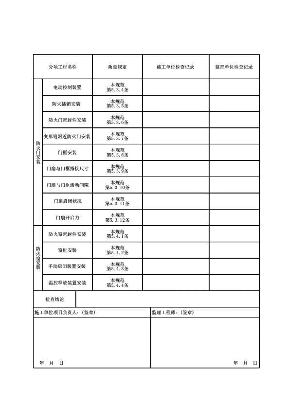 表C.0.1-3 防火卷帘、防火门、防火窗隐蔽工程质量验收记录