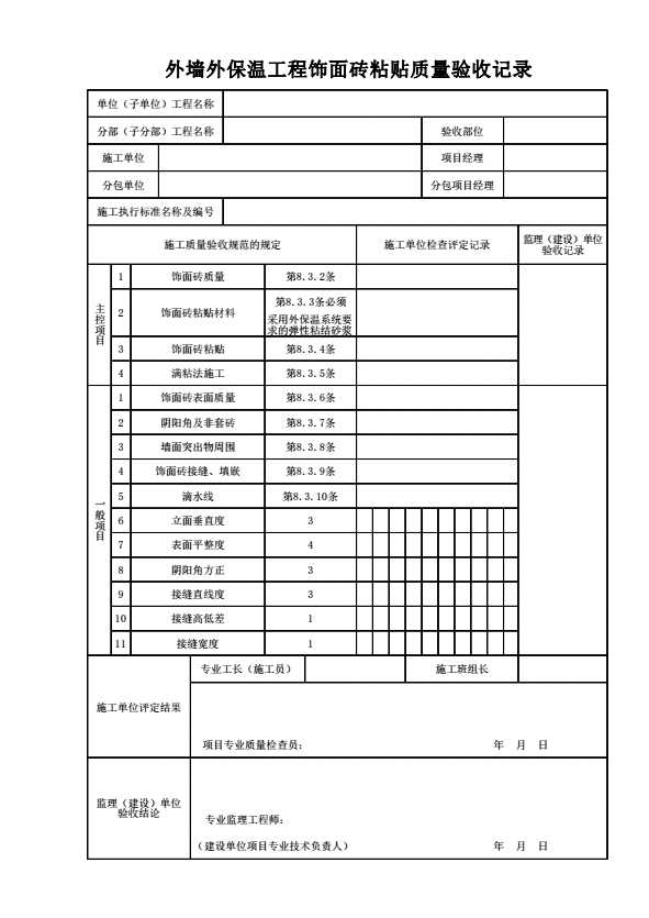 外墙外保温工程饰面砖粘贴质量验收记录