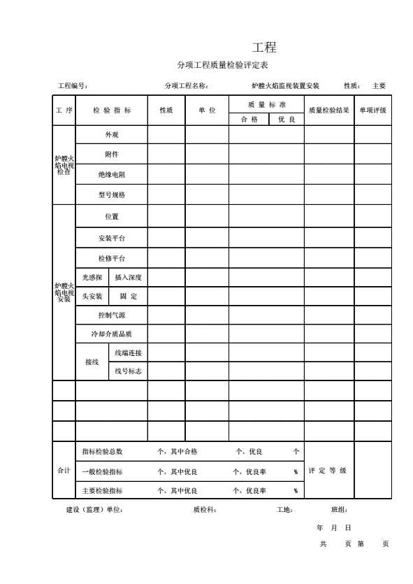 表格名称:炉膛火焰监视探头装置安装4-9-1、2