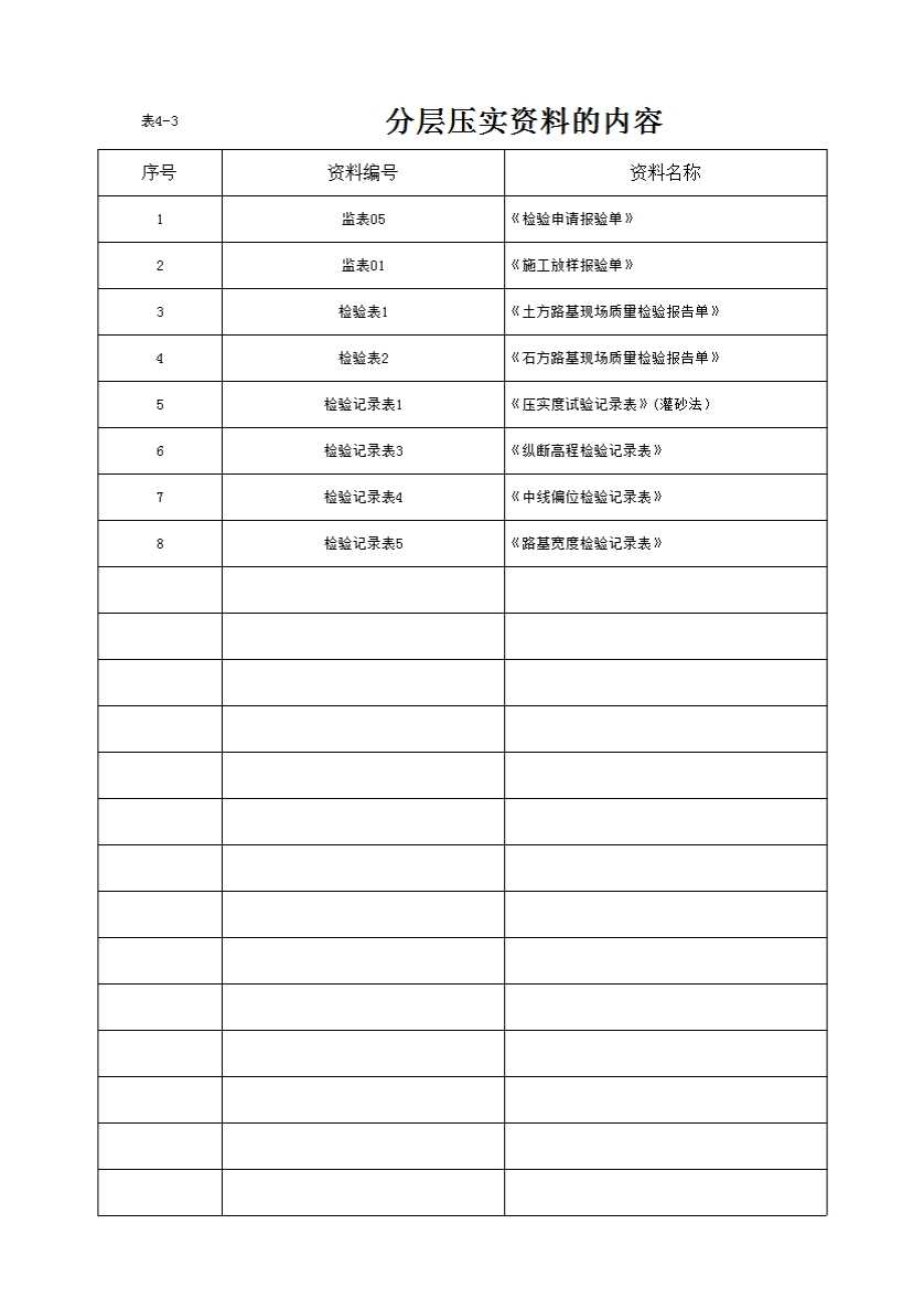 表4-3 分层压实资料的内容