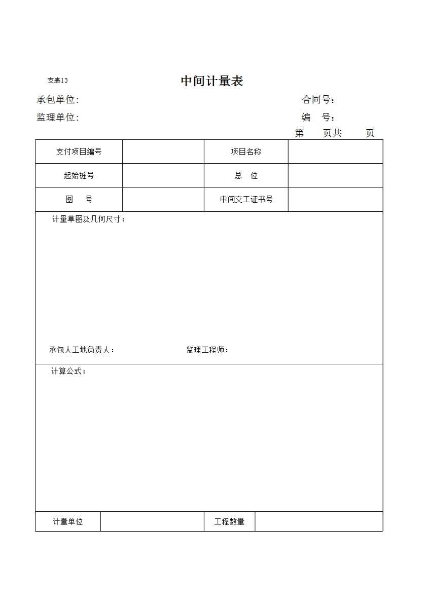 表格名称:支表13 中间计量表
