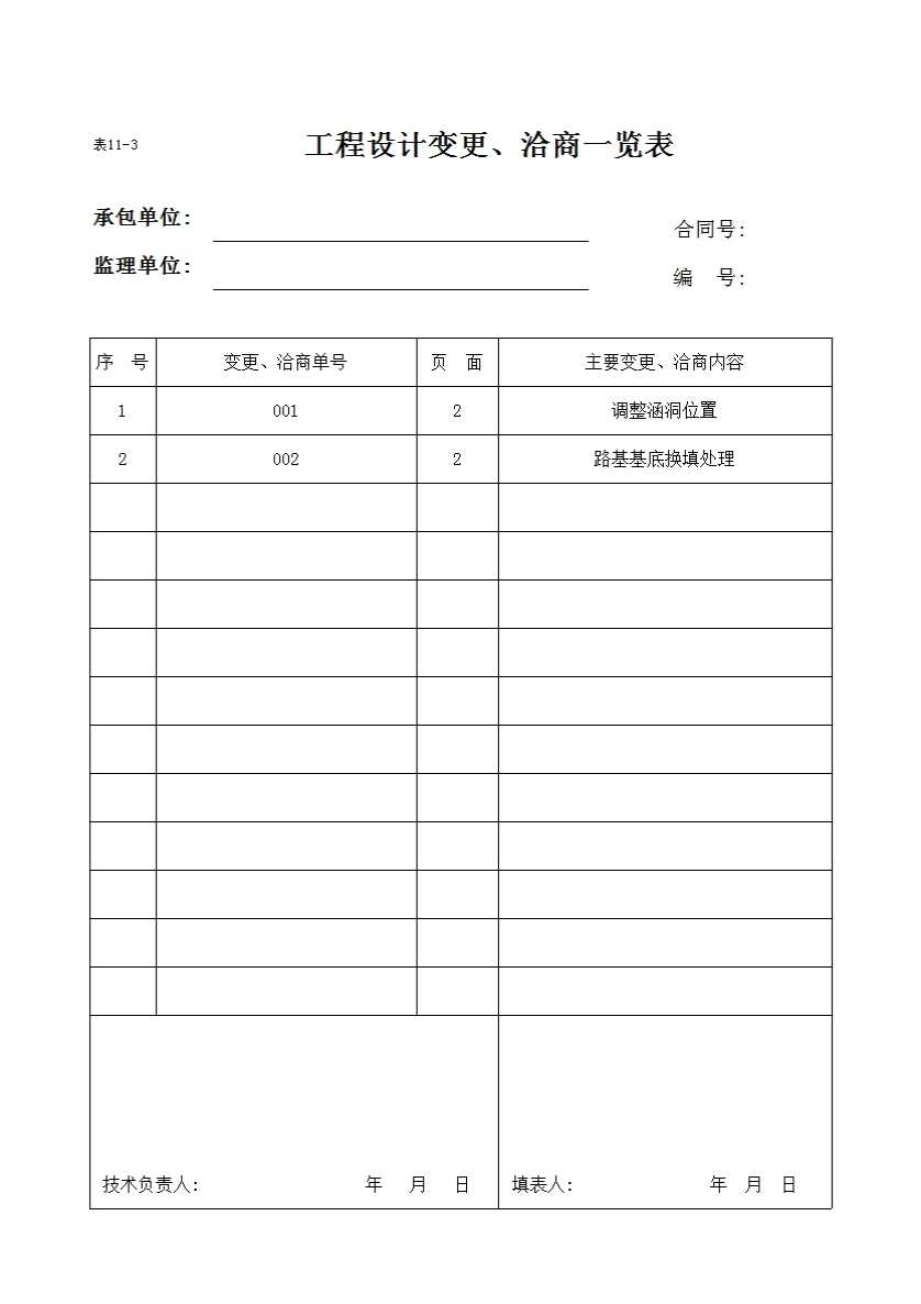 表格名称:表11-3 工程设计变更、洽商一览表