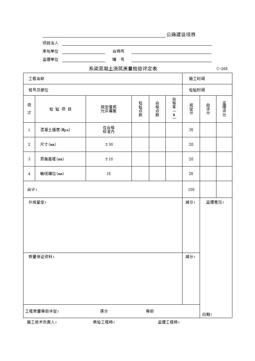 表格名称:C-268 系梁混凝土浇筑质量检验评定表