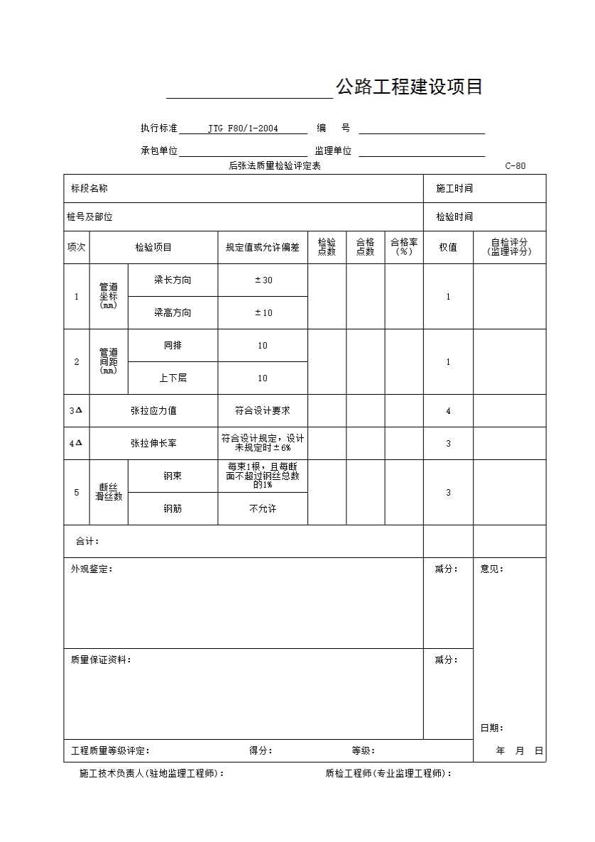 C-80表 后张法质量检验评定表