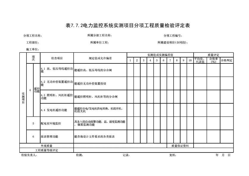 表格名称:表7.7.2 电力监控系统实测项目分项工程质量检验评定表