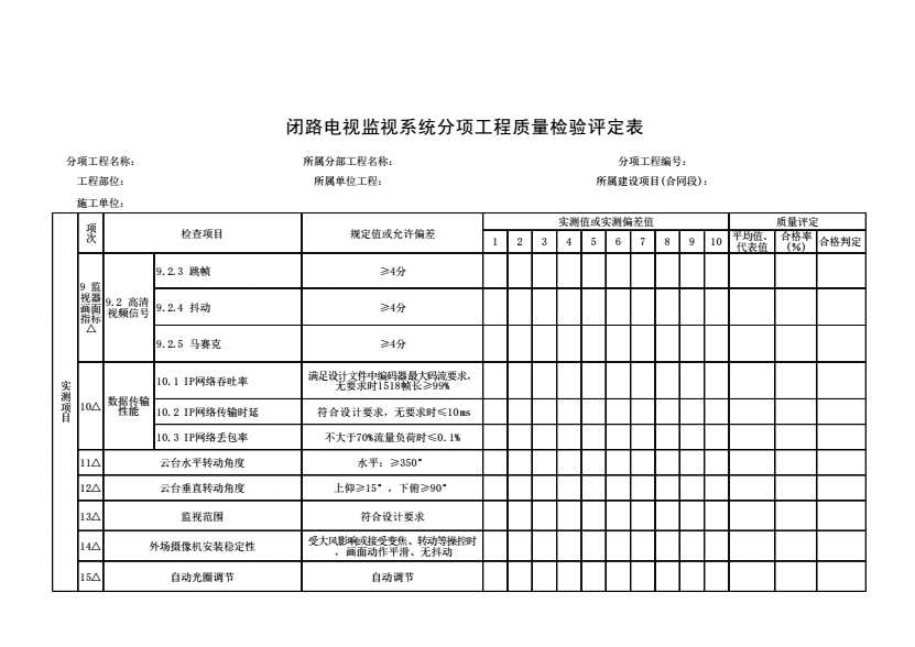 表9.2.2 闭路电视监视系统分项工程质量检验评定表