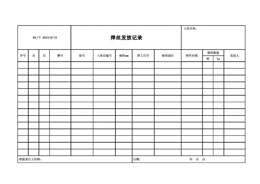 表格名称:SH/T 3543-G118 焊丝发放记录