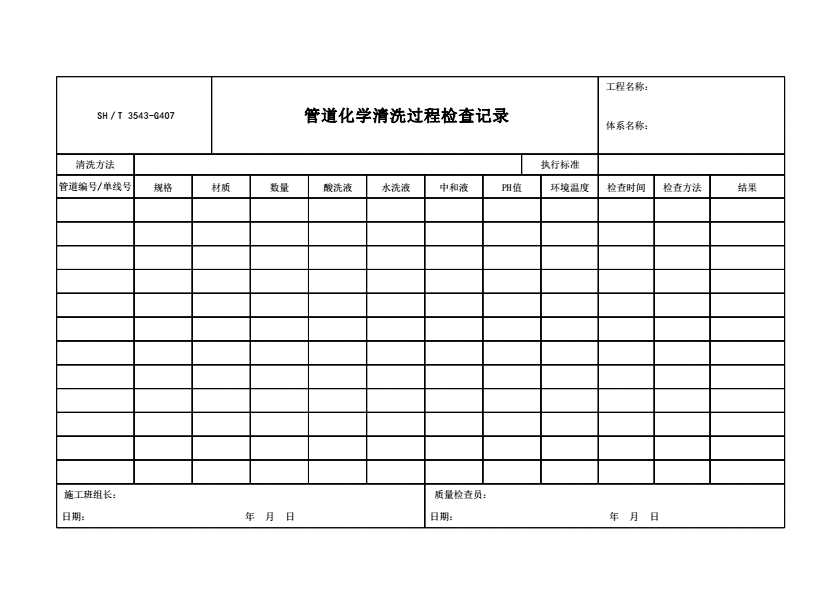 表格名称:SH/T 3543-G407 管道化学清洗过程检查记录